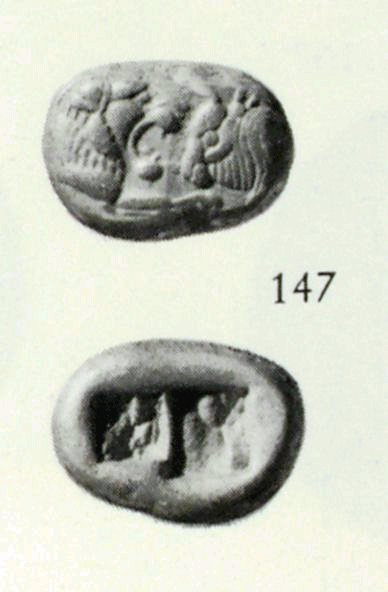 Confronted forepart of lion r. and bull l. / Two incuse squares