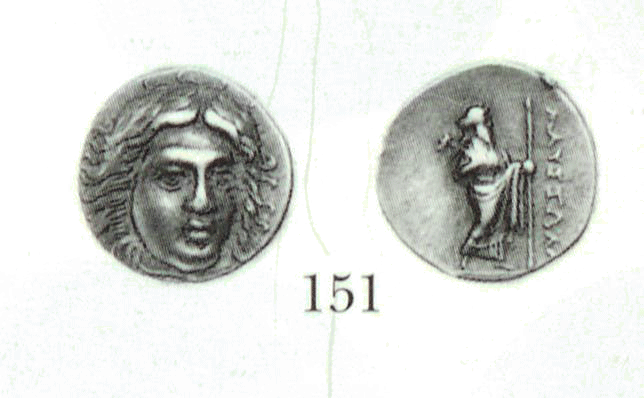 Laureate head of Apollo, three-quarter facing r. / MAYΣΣΩΛΛ[O] Zeus Labraundos standing r., holding double-axe and spear