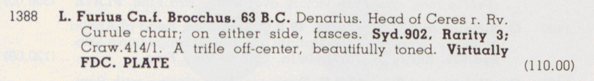 Roman Republic, Italy. L. Furius Brocchus, Rome, c. 63 BC