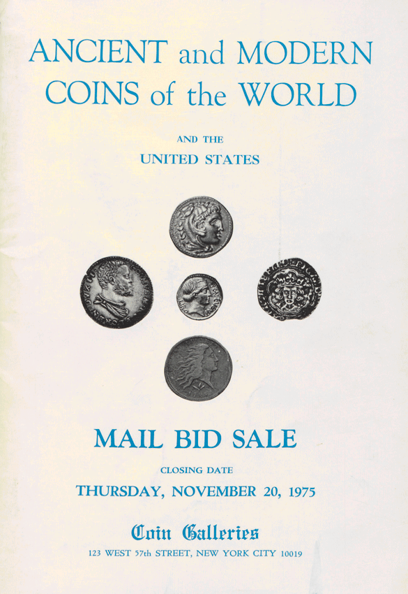 Pedigree: Ex Coin Galleries, Mail Bid Sale November 11, 1975, 1388 (the Frederic S. Knobloch collection). (comes with original Coin Galleries envelope)